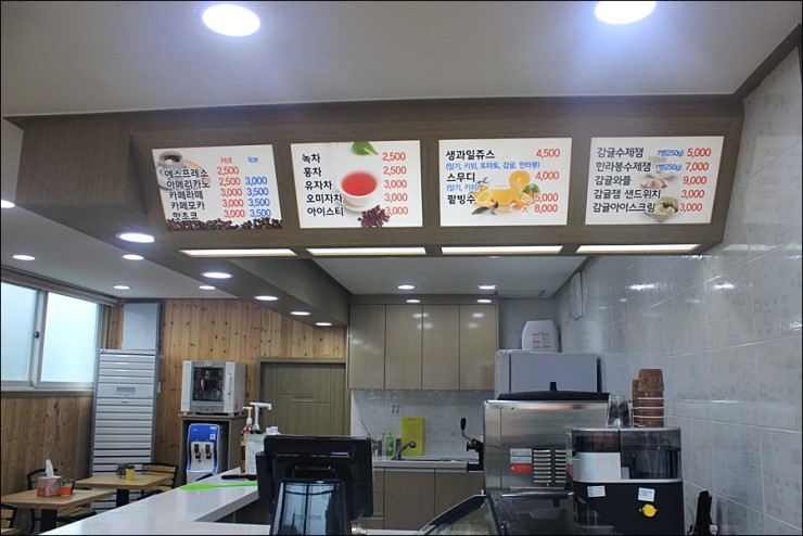 새로운 기계들이 설치도어 즉석 테이크 아웃으로 커피와 감귤 아이스크림,수제 팥빙수등으로